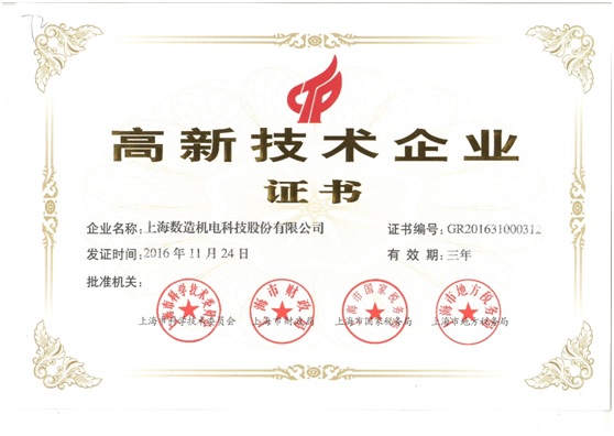 2017年2月7日,上海數(shù)造機(jī)電科技股份有限公司收到了由上海市科學(xué)技術(shù)委員會(huì)、上海市財(cái)政局、上海市國(guó)家稅務(wù)局、上海市地方稅務(wù)局聯(lián)合頒發(fā)的“高新技術(shù)企業(yè)”認(rèn)定......